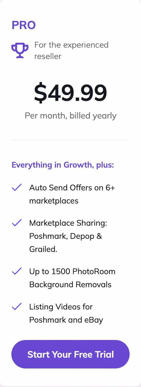 Vendoo is the ultimate solution for online sellers who want to save time, stay organized, and make more sales! Created by resellers for resellers, Vendoo streamlines every step of your workflow—crosslisting, inventory management, automation, and performance tracking, all in one place!