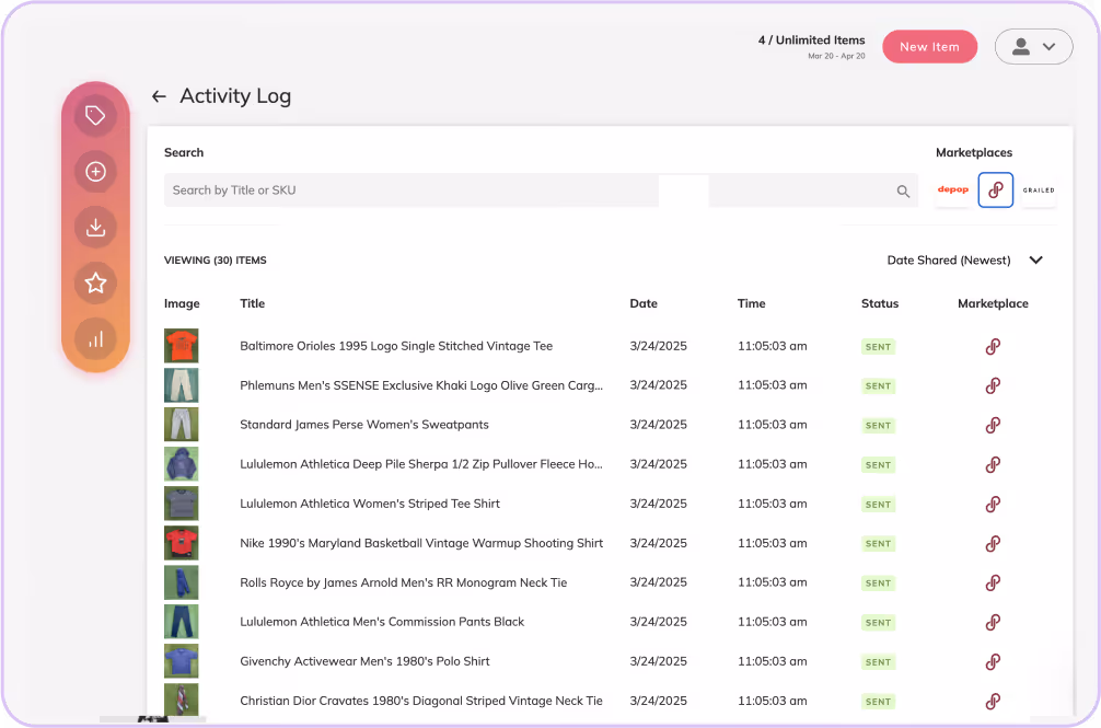 One central place to organize listings, crosslist, remove photo backgrounds, send offers, do marketplace sharing, detect sales, and more.