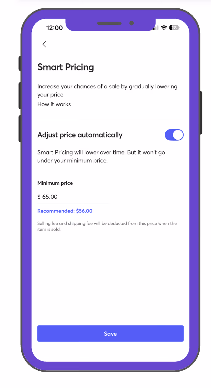 Smart Pricing is a pricing tool that automatically lowers your item price over time until it reaches a minimum you set. Smart Pricing does not have a separate fee, but it can reduce profitability if minimum prices are set too low.