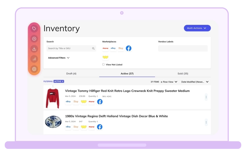 Vendoo provides powerful tools designed to streamline your listings, manage your inventory, and increase your sales.