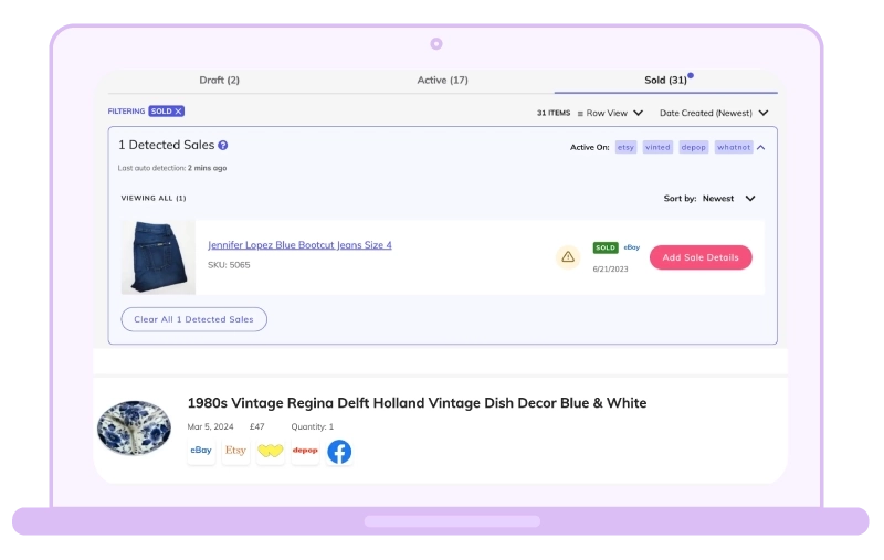 Vendoo supports popular UK selling platforms including eBay, Depop, Etsy, Poshmark, and more. This allows UK resellers to list their items on multiple marketplaces with ease