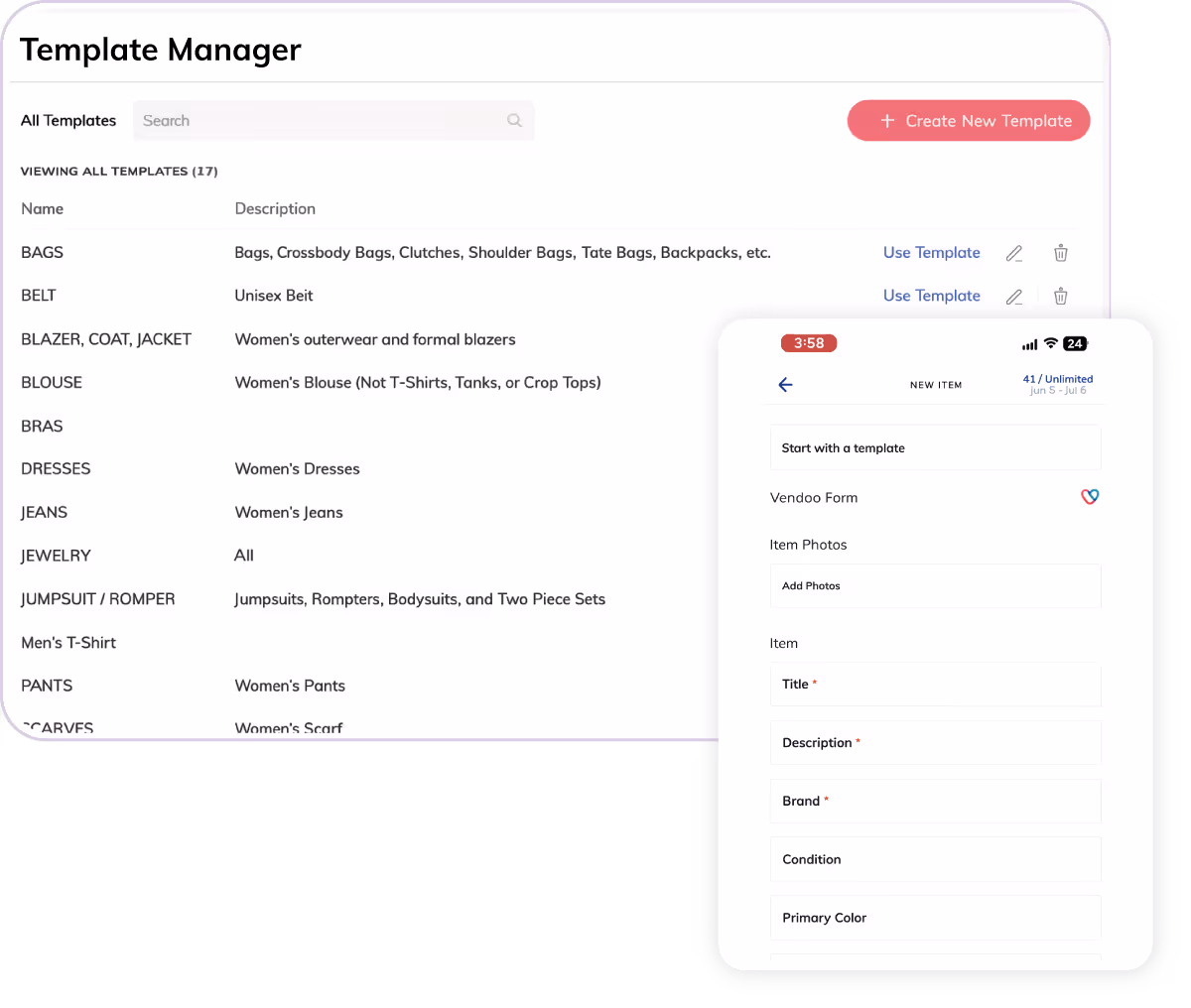 Save time listing your most frequently created items. With reusable templates and our AI Description Creator, you can pre-fill your forms and auto-generate descriptions to list faster on all Vendoo-supported marketplaces.